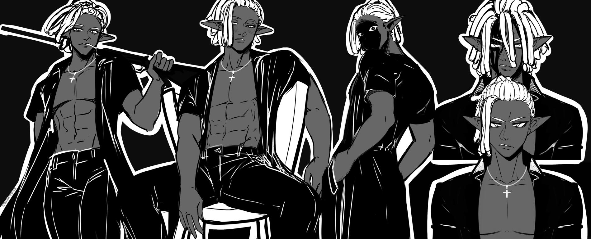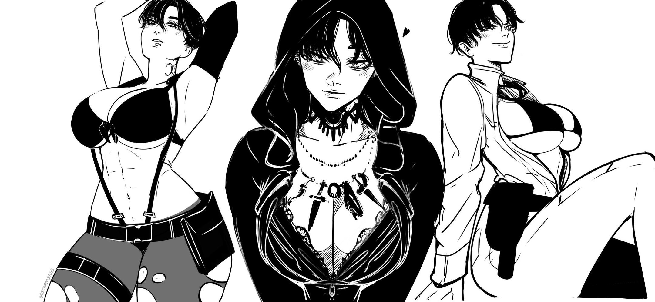 ● Note: ● This style, although primarily black and white, can also include a touch of strategic color in specific areas if requested by the client.● Extra Characters: = Full Price.